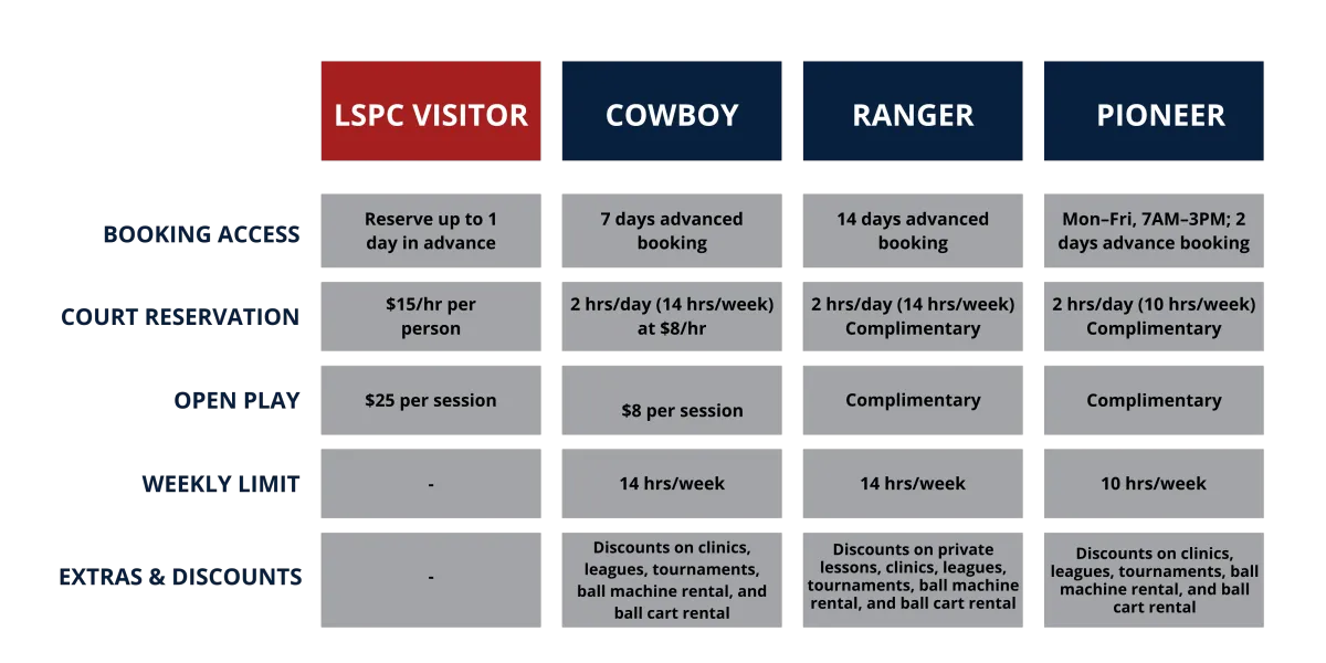 At Lone Star Pickleball Club, our memberships are built to offer flexibility, value, and VIP style perks — so you can play more, stress less.